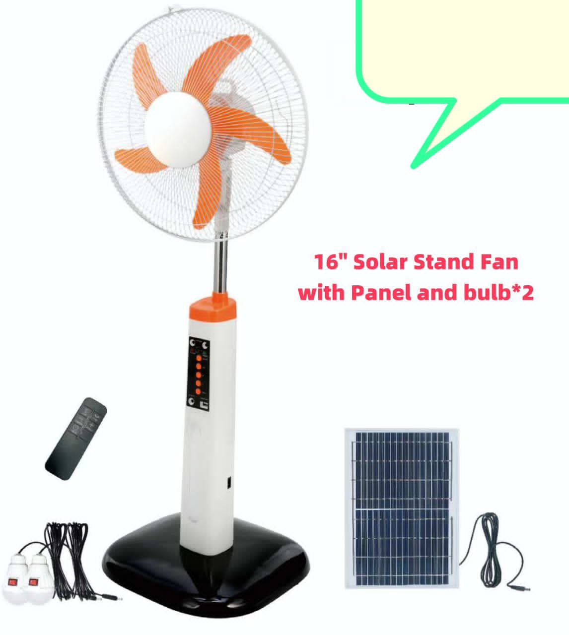 16 inches AC/DC solar stand fan with panel and 2 Bulb